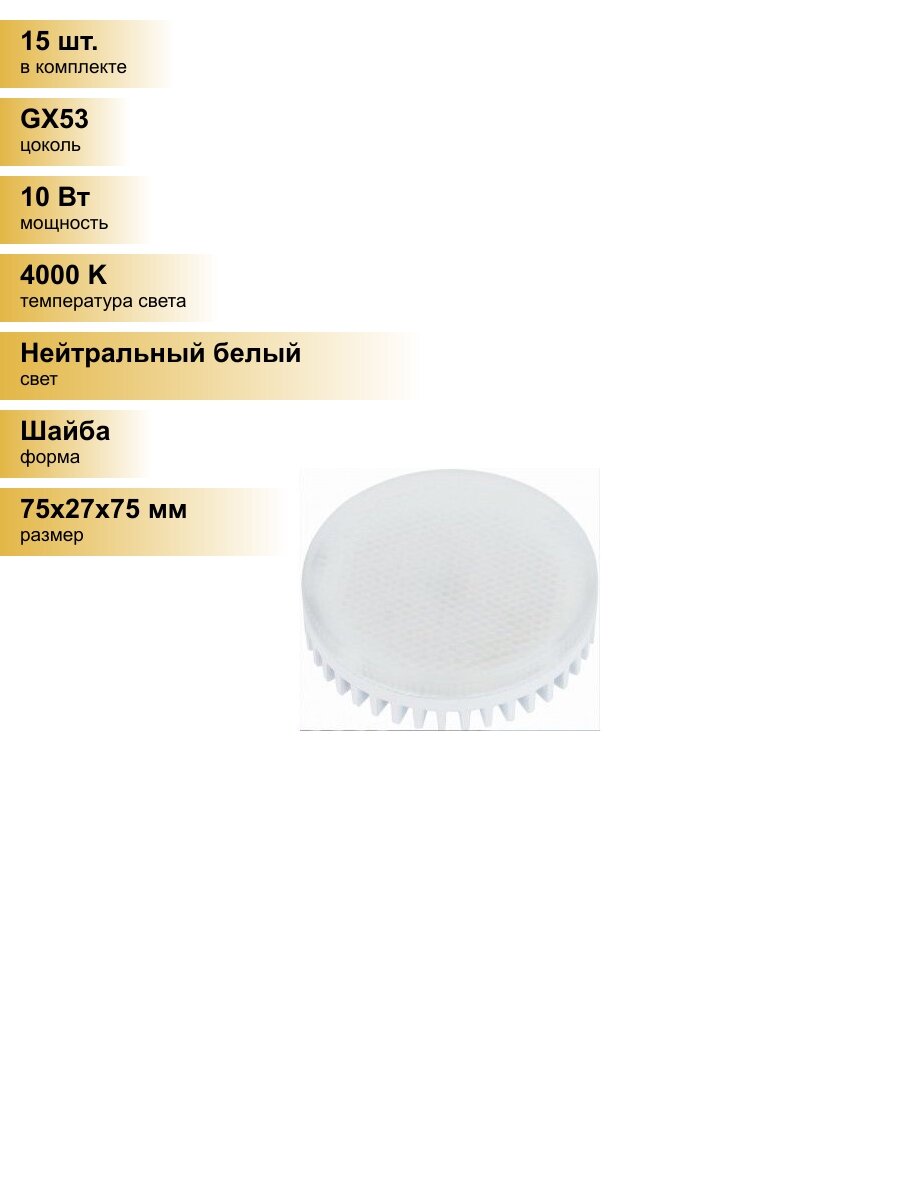 (15 шт.) Светодиодная лампочка LEEK GX53 св/д 10W(850lm) 4000K 4K 75×27 матов. LE010508-0024 Нейтральный белый. Цоколь GX53: сравнение цен, характеристики, фото, актуальное наличие и цены.