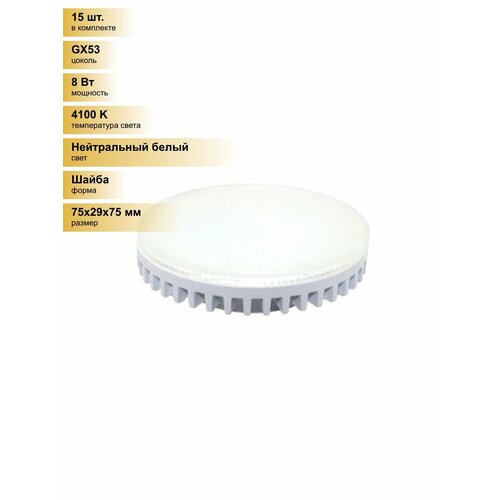 (15 шт.) Светодиодная лампочка SmartBuy GX53 св/д 8W(650lm) 4100K 4K 75×29 матов. пластик SBL-GX-8W-4K Нейтральный белый. Цоколь GX53: сравнение цен, характеристики, фото, актуальное наличие и цены.