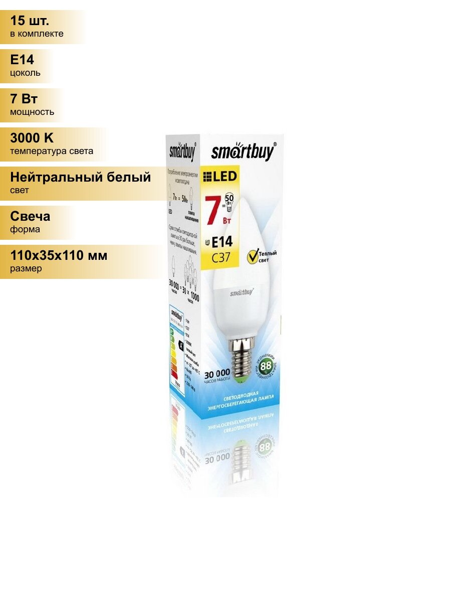 (15 шт.) Светодиодная лампочка Smartbuy свеча C37 E14 7W(500lm) 3000K 2K матовая пластик SBL-C37-07-30K-E14 Нейтральный белый. Цоколь E14: сравнение цен, характеристики, фото, актуальное наличие и цены.