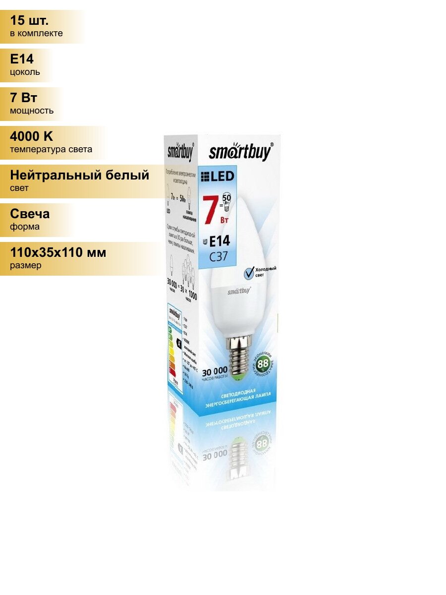 (15 шт.) Светодиодная лампочка Smartbuy свеча C37 E14 7W(550lm) 4000K 4K матовая пластик SBL-C37-07-40K-E14 Нейтральный белый. Цоколь E14: сравнение цен, характеристики, фото, актуальное наличие и цены.