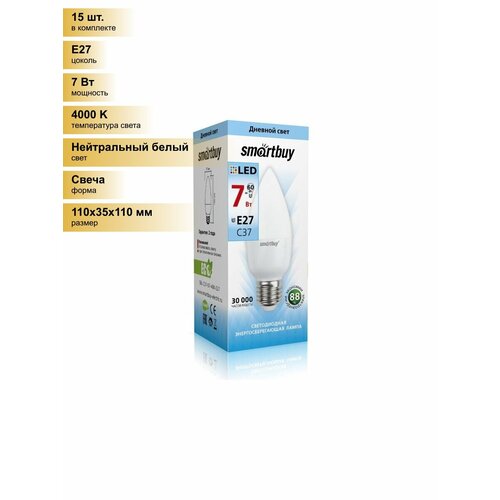(15 шт.) Светодиодная лампочка Smartbuy свеча C37 E27 7W(550lm) 4000K 4K матовая пластик SBL-C37-07-40K-E27 Нейтральный белый. Цоколь E27: сравнение цен, характеристики, фото, актуальное наличие и цены.