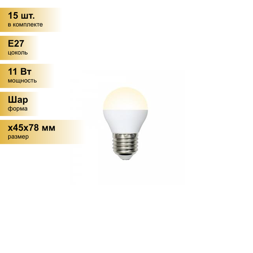 (15 шт.) Светодиодная лампочка Volpe NORMA шар G45 E27 11W(900lm) 3000K 2K матовая 45×78 LED-G45-11W/WW/E27/FR/NR Нейтральный белый. Цоколь E27: сравнение цен, характеристики, фото, актуальное наличие и цены.