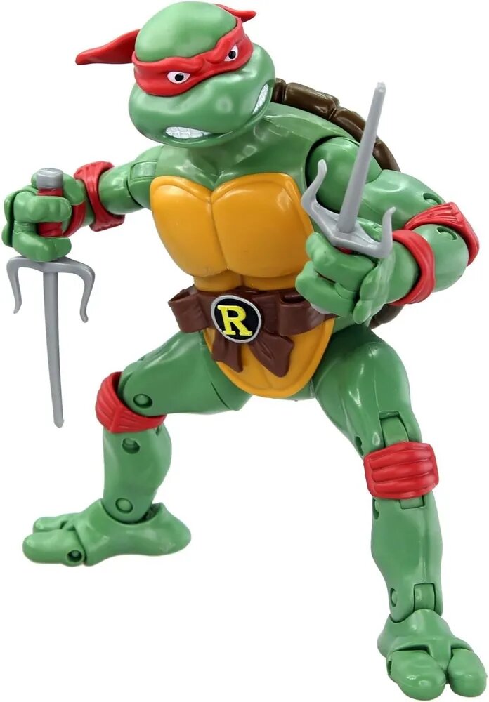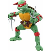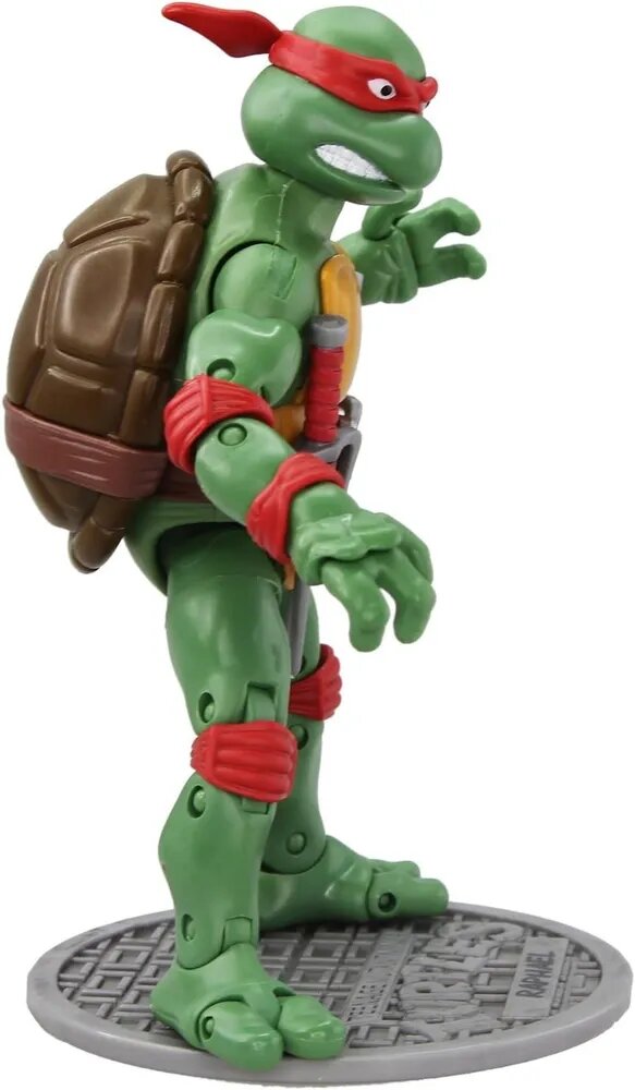 Практически каждый ребенок сегодня наизусть помнит имена всех четырех героев, отдавая предпочтение тому или иному в собственных фантазиях. Особой популярностью у детей пользуется Рафаэль, забавный малый, наверное, самый непредсказуемый из всей отважной четверки. Компания Sambro сделала для детей настоящий сюрприз, выпустив точную копию мультяшного героя. Игрушечная фигурка, ростом в 15 см, полностью идентична Рафаэлю, одному из главных героев мультсериала. Та же расцветка, и то же вооружение, все то, что свойственно и характерно для этого персонажа. Классическая фигурка сделана на основе макетов для популярного сериала, а для большей реалистичности, создатели игрушки оснастили ее двигающимися частями тела. Руки и ноги, наконец, голова и туловище, все это вращается, позволяя ребенку самостоятельно имитировать действия любимого героя, подражать боевым стойкам и повадкам героя в своих играх. С такой игрушкой, ребенок может смело создавать свои сюжеты, придумывая каждый раз новые приключения для Рафаэля, вооружая его на свое усмотрение. К серии идет в дополнение самое разнообразное оружие, которое совместимо с любым другим персонажем.