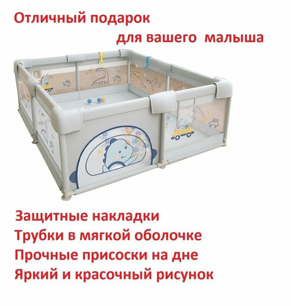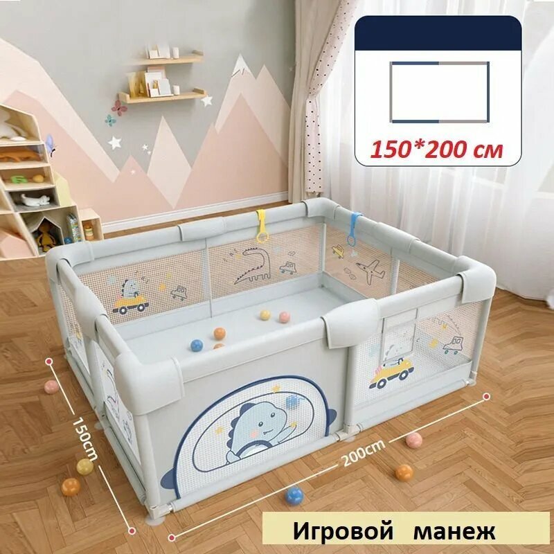 150*200 см. ДИНОЗАВРИК_Манеж детский игровой сборный с шариками и держателями, цвет серый.: сравнение цен, характеристики, фото, актуальное наличие и цены.