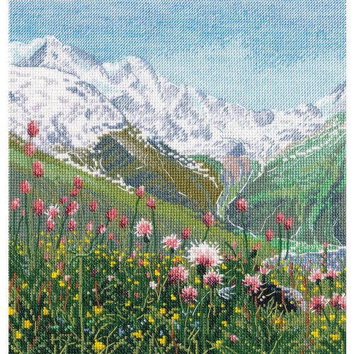 Набор для вышивания 'Красная поляна' укомплектован сетчатой канвой Aida 16 каунта – она прекрасно подходит для схем с подробной детализацией и почти не просвечивает.