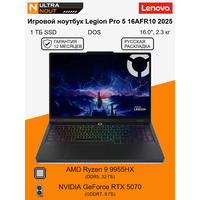 16.0" ноутбук Lenovo Legion Pro 5 16AFR10 2025 [2560x1600] Ryzen9 9955HX 32GB DDR5 1TB SSD M.2 NVIDIA GeForce RTX 5070 DOS 2.3кг