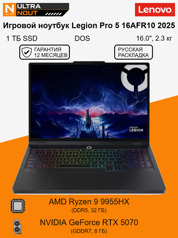 16.0″ ноутбук Lenovo Legion Pro 5 16AFR10 2025 [2560×1600] Ryzen9 9955HX 32GB DDR5 1TB SSD M.2 NVIDIA GeForce RTX 5070 DOS 2.3кг: сравнение цен, характеристики, фото, актуальное наличие и цены.