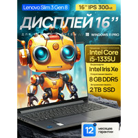 Купить 16″ Ноутбук Lenovo IdeaPad Slim 3 Gen 8, Intel Core i5-1335U (10 ядер, до 4.6 ГГц), Intel Iris Xe Graphics, RAM 8 ГБ LPDDR5, SSD 2 ТБ, Windows 11 Pro + Office 2021 Pro Plus, Arctic Grey, Русская раскладка с доставкой по всей России.
