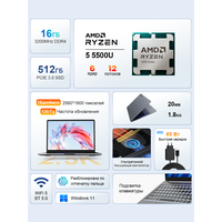 Процессор AMD Ryzen 5 5500U — энергоэффективный, но при этом бодрый, для кодинга, работы с фото, учебы или интернет-серфинга его хватает с головой. Главное — все это работает тихо, прохладно и без дикого поедания батареи. Зарядка, кстати, идет в комплекте GaN, 65 Вт. По размерам — как у смартфона.