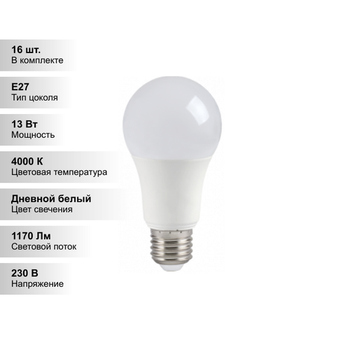 Купить (16 шт.) Светодиодная лампочка IEK A60 13Вт 230В 4000К E27 с доставкой по всей России.
