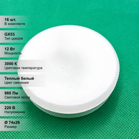 Купить (16 шт.) Светодиодная лампочка Jazzway 12Вт=100Вт 230В 3000K GX53 с доставкой по всей России.