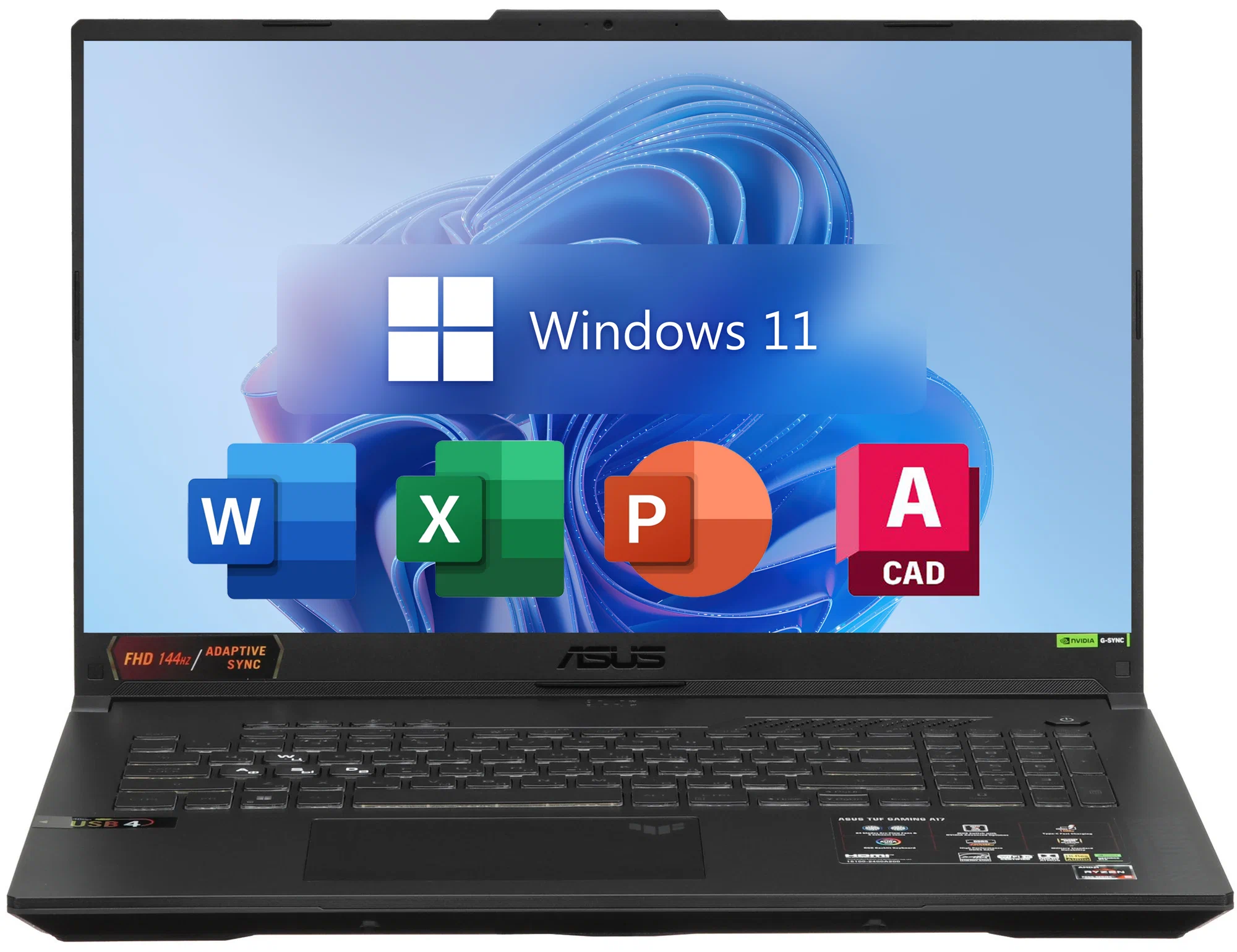 Комплектация и цвет Игровой ноутбук Asus TUF Gaming F17 поставляется с предустановленной операционной системой Windows 11 Pro и пакетом офисных приложений Office 2021 Pro Plus, а также с Autocad 2024 для профессиональной работы с чертежами. Цвет товара – черный.