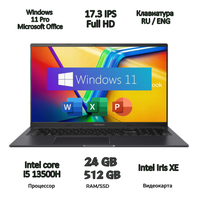 17.3″ Ноутбук ASUS VivoBook 17X, IPS, Intel Core i5-13500H (12 ядер), RAM 16 ГБ, SSD 512 ГБ, Intel Iris Xe Graphics G7, Windows 11 Pro , Русская раскладка: сравнение цен, характеристики, фото, актуальное наличие и цены.