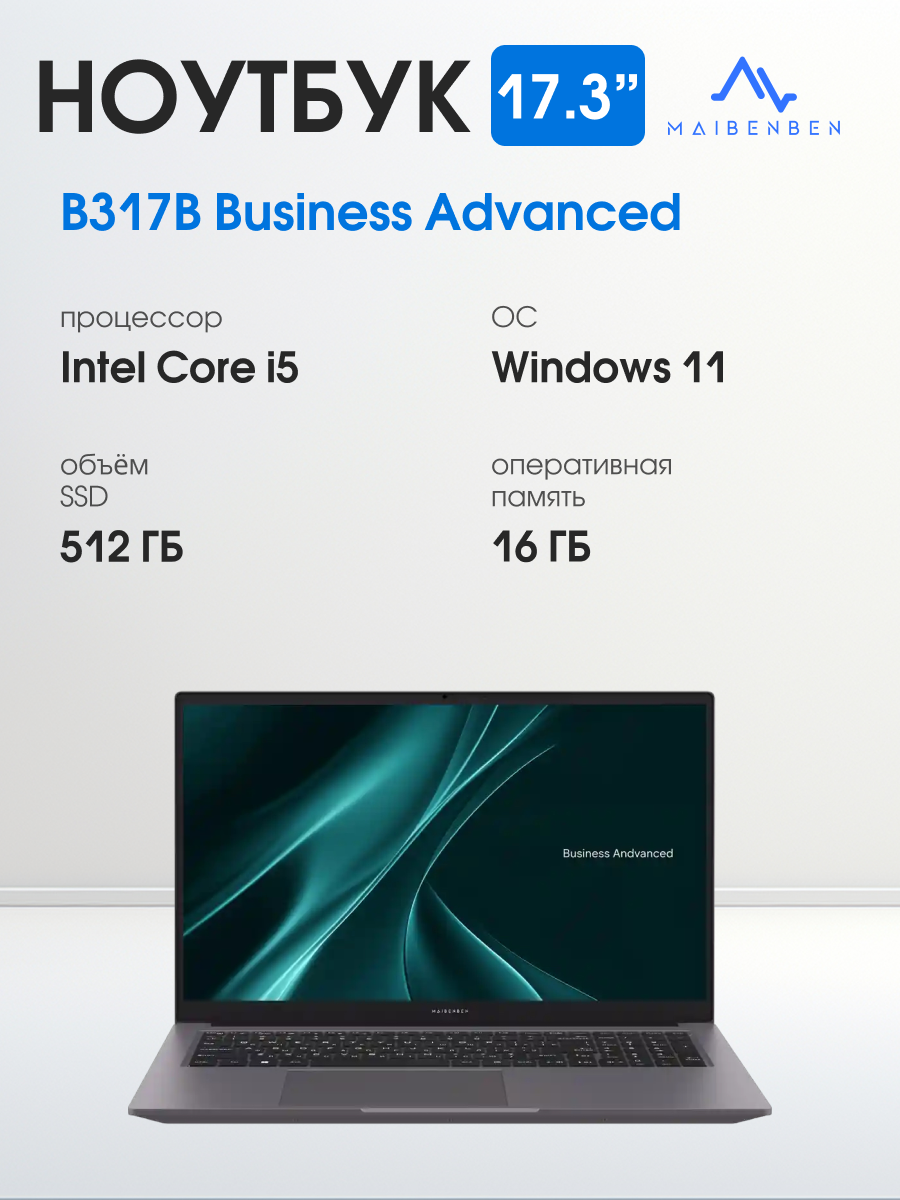 17.3″ Ноутбук MAIBENBEN B317B Business Advanced, IPS 60 Гц, Intel Core i5 12450H (2 ГГц), 16/512 ГБ, Win 11 Pro, серый: сравнение цен, характеристики, фото, актуальное наличие и цены.