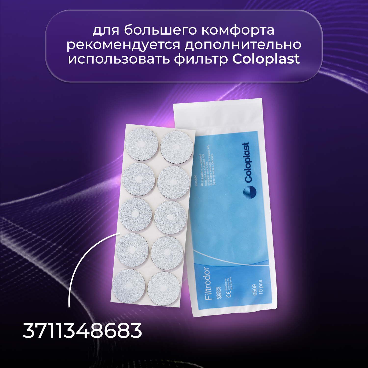 Повторное использование данного изделия, предназначенного для однократного применения, может представлять риск для пользователя. Повторная обработка, очистка, дезинфекция и стерилизация могут ухудшить технические характеристики изделия, что в свою очередь создает риск нанесения телесных повреждений или инфицирования пациента. Колопласт не несет ответственности за травмы и повреждения, полученные в результате несоблюдения рекомендаций компании по использованию данной продукции.