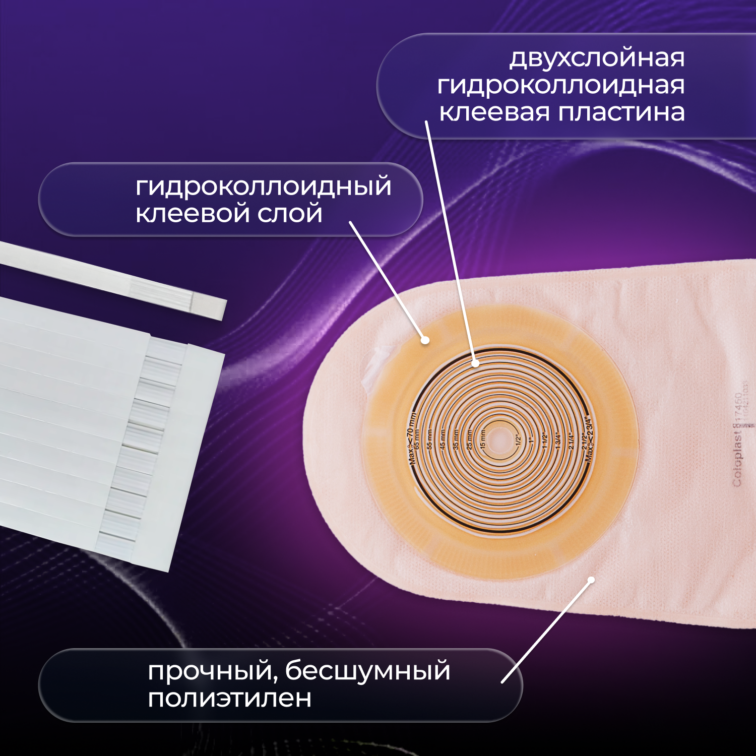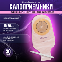 Coloplast Alterna Однокомпонентные калоприемники мешок дренируемый. отв.10-70мм Coloplast Alterna – это однокомпонентный дренируемый калоприемник, подходящий как для пациентов с колостомами, так и для пациентов с илеостомами. Уникальная структура клеевого слоя адгезивной пластины обеспечивает хорошую герметизацию, а специальный полиэтилен мешка – надежное удерживание запаха. Мешок изготовлен из специального полиэтилена, надежно удерживающего запах, имеет встроенную адгезивную пластину, мягкую подложку и удобный клеящийся зажим. Со стороны, прилегающей к телу, мешок имеет подложку, которая обеспечивает комфортное ношение.
