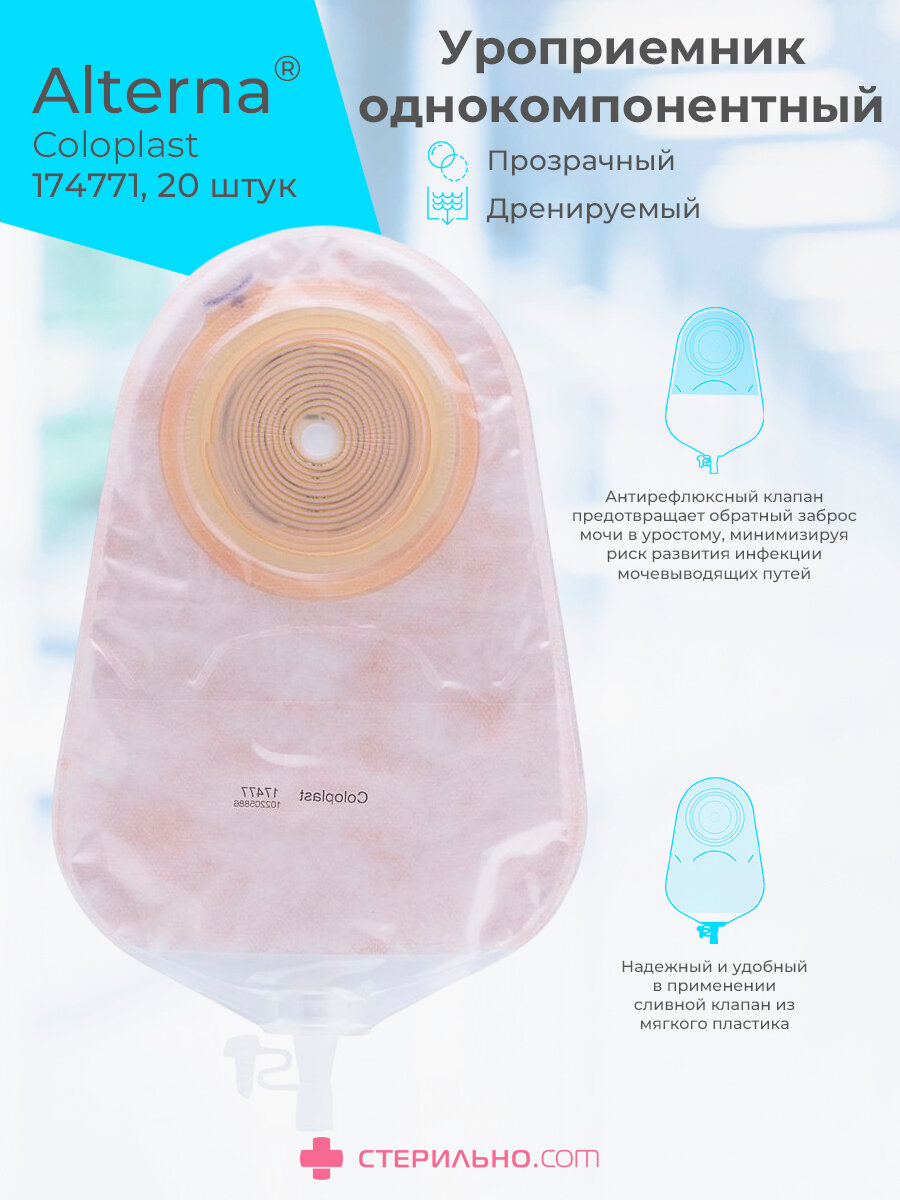 Купить 174771 Однокомпонентный дренируемый уроприемник со встроенной плоской пластиной Колопласт Алтерна (Coloplast Alterna) нового поколения, вырезаемое отверстие 10-55 мм, 20 шт. с доставкой по всей России. 174771 Однокомпонентный дренируемый уроприемник со встроенной плоской пластиной Колопласт Алтерна (Coloplast Alterna) нового поколения, вырезаемое отверстие 10-55 мм, 20 шт.: сравнение цен, характеристики, фото, актуальное наличие и цены.
