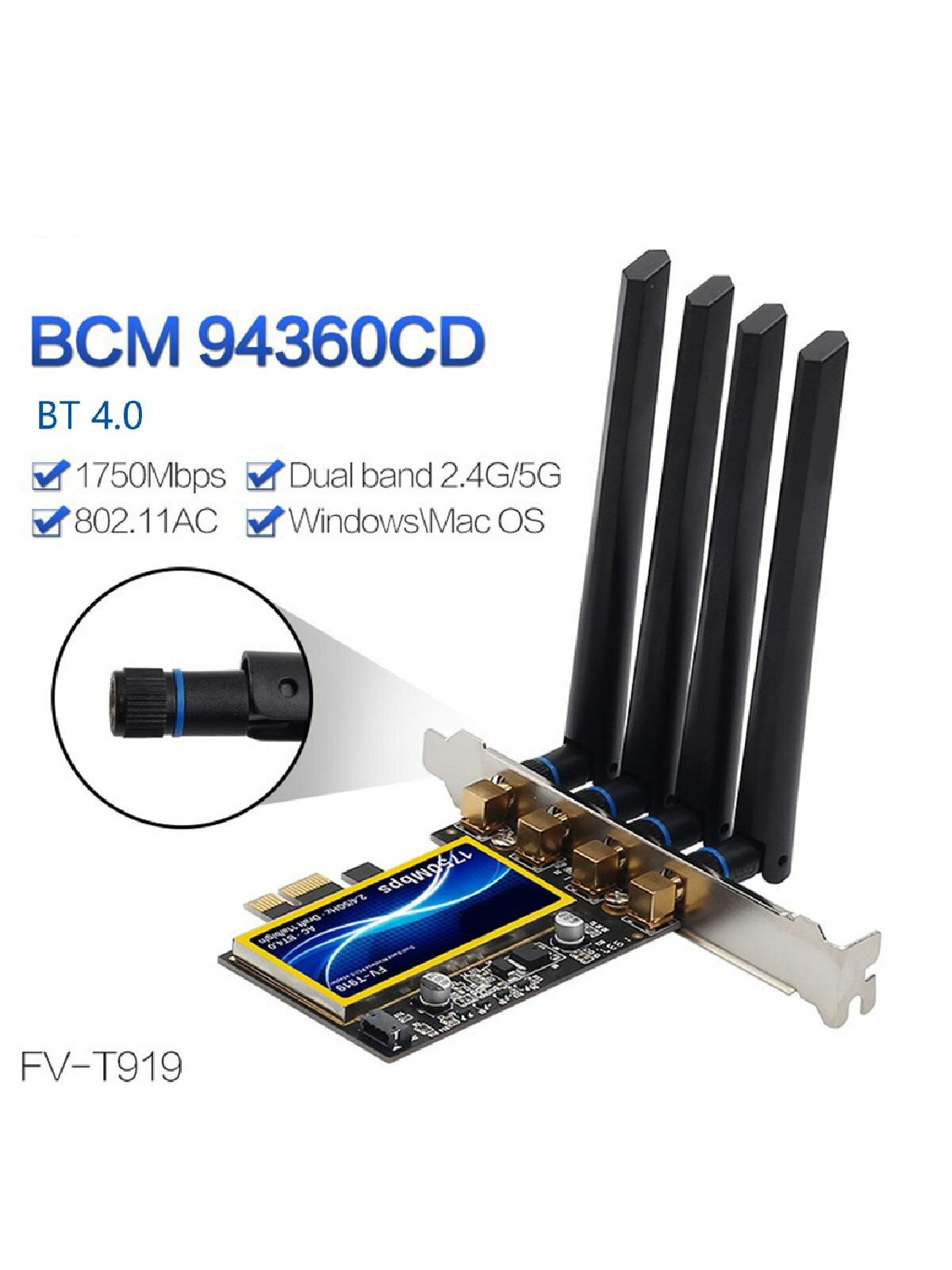 Купить 1750Mbps PCIe WiFi Card Adapter BCM94360CD Bluetooth-compatible 4.0 802.11ac 2.4G/5GHz Dual Band Receiver for Desktop PC с доставкой по всей России.