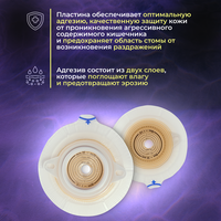 Coloplast Alterna Extra пластина плоская с креплениями для пояса, фланец 40 мм, вырезаемое отверстие 10-35 мм выполнена с использованием гидроколлоидного адгезивного материала новейшего поколения. Адгезив пластины Alterna обладает ярко выраженными гипоаллергенными свойствами и эффективно защищает кожу в области стомы от возможного раздражения. Клеевой слой в центре пластины имеет спиралевидную структуру, обеспечивающую высокие абсорбирующие качества. Внешний край пластины белого полупрозрачного цвета - позволяет надолго фиксировать пластину, защищает кожи от влаги и предотвращает раздражений. Меняется не ранее чем через 48 часов! Время ношения от 5 дней! Адгезив Alterna Extra подходит для выделений жидкого характера (уростома и илеостома). Более устойчив к воздействию агрессивных жидких выделений из стомы. Состоит адгезив из переменного бесцветного и коричневого клеевого слоя в центре и прозрачного по краям. Адгезивы обеспечивает надежное крепление пластины и защиту кожи от выделений, особенно жидких. Оба слоя поглощают влагу и предотвращают эрозию. Утонченный и ребристый край пластины позволяет ей лучше приспосабливаться к неровностям кожи и не стеснять движения человека. Имеются крепления для пояса. При отклеивании пластины нужно следить, чтобы адгезивный слой не оставался на коже. Для этого рекомендуется использовать салфетки для удаления адгезива и очиститель для кожи.