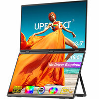 Двойной портативный монитор от компании Uperfect. Два рабочих пространства по 18.5 дюйма, с FHD (1920х1080) разрешением и частотой обновления 120Hz. Имеет встроенные динамики и выход на наушники, что позволяет наслаждаться звуков, а также удобную подставку. Матовая поверхность экранов позволяет работать в хорошо освещённых помещениях.