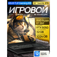 18" Игровой ноутбук Asus TUF Gaming 18 2025,144 Гц, 100% sRGB, AMD Ryzen 7 260 (8 ядер, 5.1 ГГц), RAM 32 ГБ DDR5, SSD 1 ТБ, NVIDIA GeForce RTX 5050 (8 Гб GDDR7, 105 Вт), Windows 11 Pro + MS Office 2021 Pro Plus, Русская раскладка