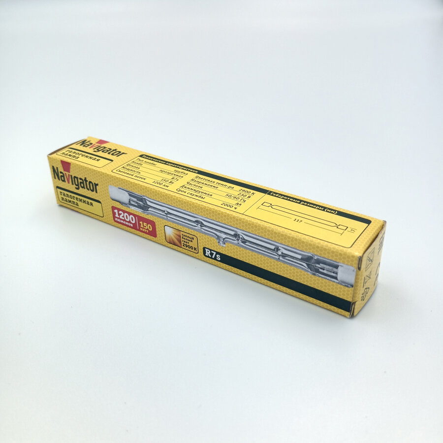 (18 шт.) Галогенная лампочка Navigator J117, мощность 150 Вт, напряжение питания 220 В, цоколь R7s, цветовая температура 2900 К, размер ø7х117 мм: сравнение цен, характеристики, фото, актуальное наличие и цены.