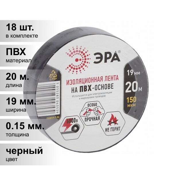 (18 шт.) Изолента ПВХ черная 19мм 20м ЭРА: сравнение цен, характеристики, фото, актуальное наличие и цены.