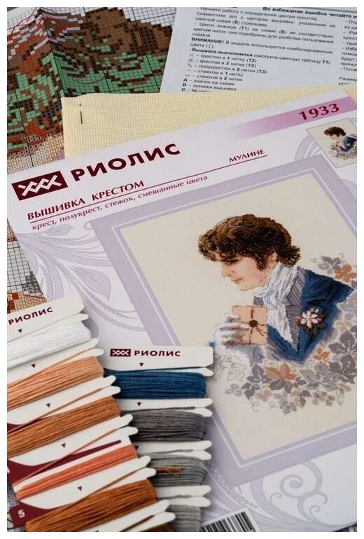 Набор для вышивания известного российского производителя Риолис. В состав набора входят: канва белого цвета 14 Aida Zweigart; нитки мулине Anchor; игла; цветная схема; инструкция на русском языке. Риолис с 1996 года производит наборы для вышивания крестом. За эти годы творческой работы компания значительно расширила свой ассортимент. Для начинающих любителей вышивки Риолис создал марку «Весёлая пчёлка» с небольшими и яркими картинками. Для тех, кто уверенно владеет разными техниками вышивки и рукоделия, будут интересны наборы самой многочисленной серии «Сотвори сама». И ценителям с особыми требованиями к качеству материалов, разработке сюжета, надежности и презентабельности упаковки можно посоветовать остановить свое внимание на Riolis Premium.