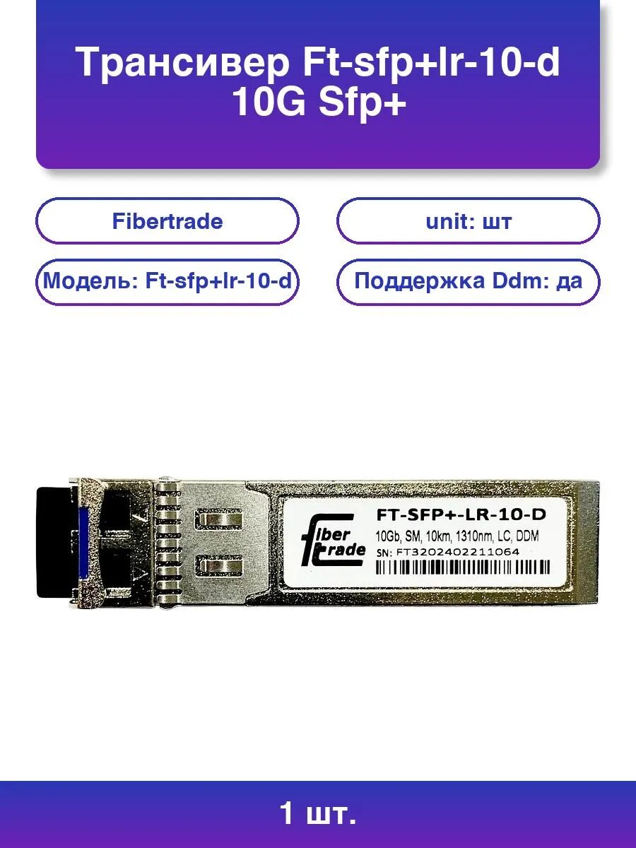 Купить 1шт. FT-SFP+LR-10-D 10G Transceiver, 10km, 1310nm Fibertrade с доставкой по всей России. 1шт. FT-SFP+LR-10-D 10G Transceiver, 10km, 1310nm Fibertrade: сравнение цен, характеристики, фото, актуальное наличие и цены.