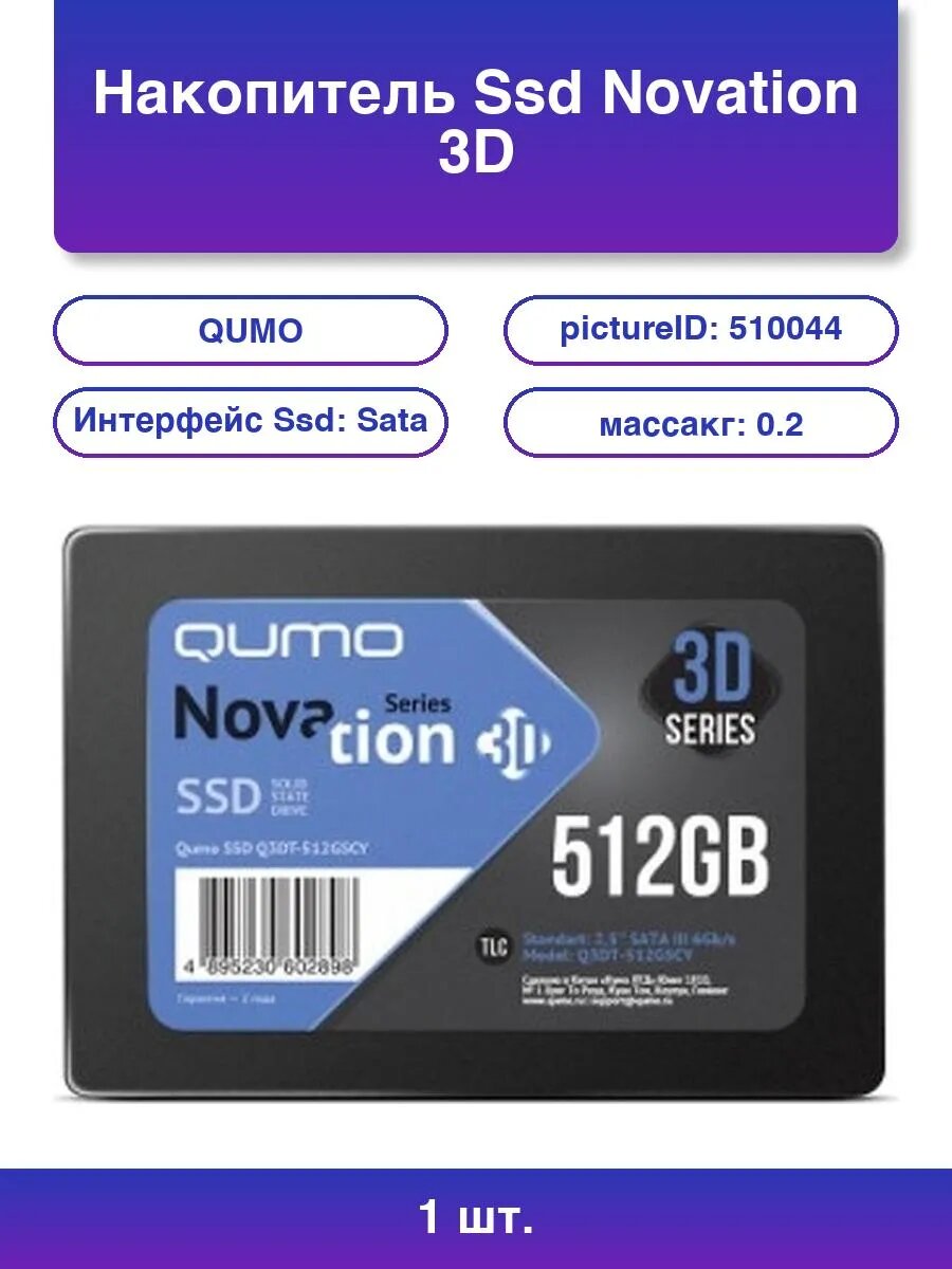 Купить 1шт. QUMO 512GB SSD Novation 3D SATA III, 2.5, 560/520 R/W с доставкой по всей России. 1шт. QUMO 512GB SSD Novation 3D SATA III, 2.5, 560/520 R/W: сравнение цен, характеристики, фото, актуальное наличие и цены.