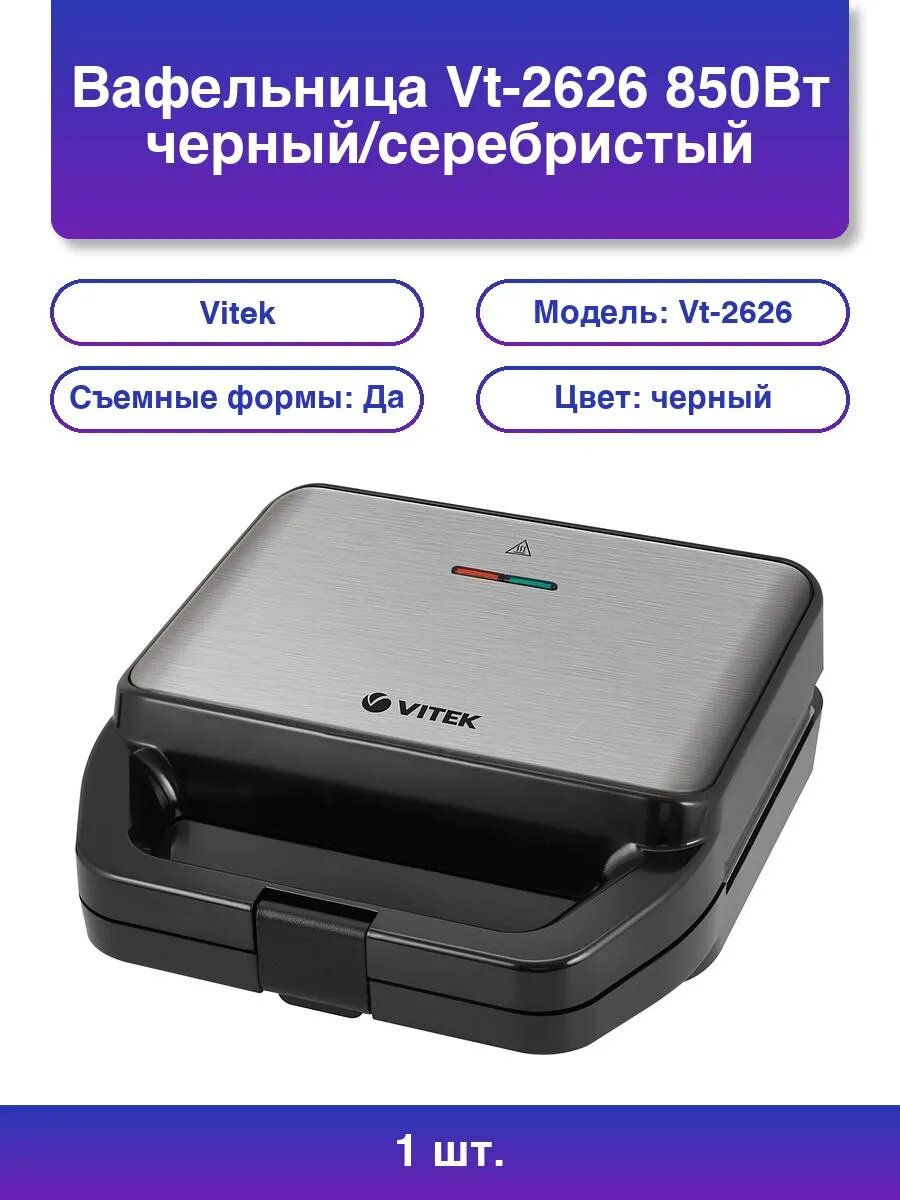 Купить 1шт. Вафельница Vt-2626 850Вт черный/серебристый с доставкой по всей России. 1шт. Вафельница Vt-2626 850Вт черный/серебристый: сравнение цен, характеристики, фото, актуальное наличие и цены.
