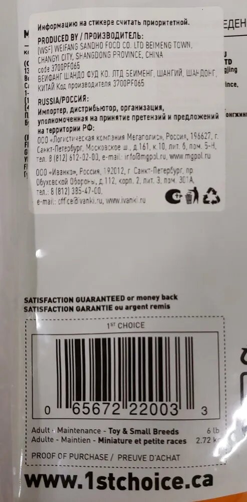 Курица — главный ингредиент этой сбалансированной и очень вкусной формулы. Натуральные источники клетчатки, такие как мякоть томатов и мякоть свеклы обеспечивают хороший кишечный транзит и пищеварение. L-карнитин и экстракт подсолнечного масла помогают усваивать жиры и препятствуют их отложению. Превосходное сочетание экстракта зеленого чая, быстрорастворимого витамина С, клетчатки, мяты и петрушки освежает дыхание и обеспечивает гигиену зубов и полости рта. Натуральные пребиотики, такие как экстракт цикория - источник инулина (фрукто-олигосахариды) и дрожжевой экстракт (маннан-олигосахариды) способствуют росту и развитию полезной кишечной микрофлоры, что улучшает иммунную систему. Лучшие достижения диетологии помогают собакам декоративных и мелких пород поддерживать свою жизненную энергию, вес и хорошее физическое состояние. Ингредиенты: Мука из мяса курицы, дробленый рис, перловая крупа, овсяная крупа, куриный жир (источник жирных кислот Омега-6), в качестве консерванта — смесь токоферолов,(источник витамина Е), сушеная мякоть свеклы, измельченная клетчатка, сушеная мякоть томатов, гидролизат куриной печени, цельное семя льна, лецитин, хлорид калия, соль, холинхлорид, кальция пропинат (в качестве консерванта), дрожжевой экстракт, аскорбиновая кислота ( витамин С), таурин, экстракт цикория ( источник инулина), сульфат железа, оксид цинка, ацетат ɑ-токоферола (источник витамина Е), экстракт Юкки Шидигера, протеинат железа, протеинат цинка, селенит натрия, мононитрат тиамина, мука из водорослей, экстракт зеленого чая, сушеная мята, сушеная петрушка, L-карнитин, экстракт подсолнечного масла, витамины и минералы.