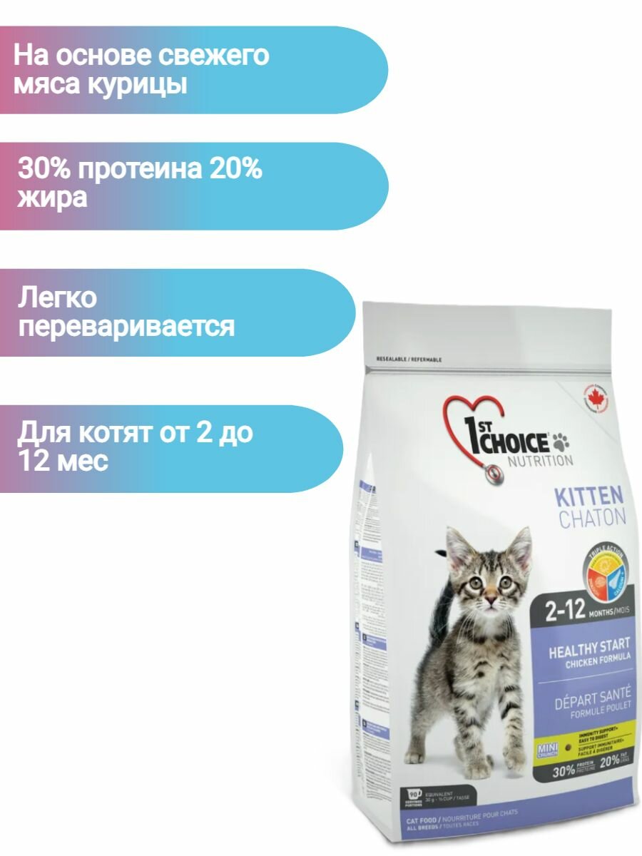 1st CHOICE Здоровый старт- это идеальный выбор для маленьких питомцев, которым необходимо обеспечить полноценное и сбалансированное питание. Этот корм разработан специально для маленьких котят, учитывая их особенности и потребности в росте и развитии.