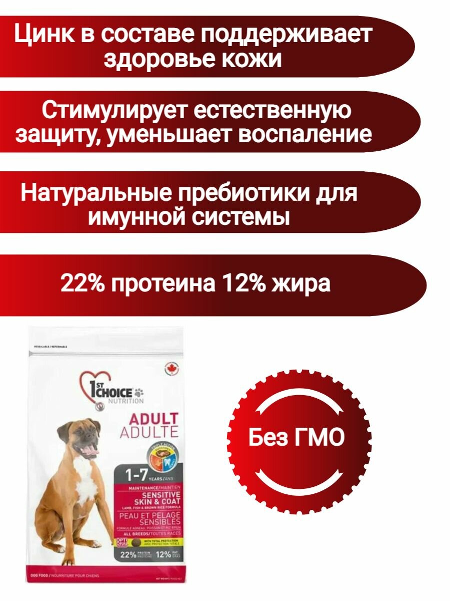 1ST CHOICE сухой корм для собак с чувствительной кожей и шерстью ягненок рыба и рис 7кг: сравнение цен, характеристики, фото, актуальное наличие и цены.