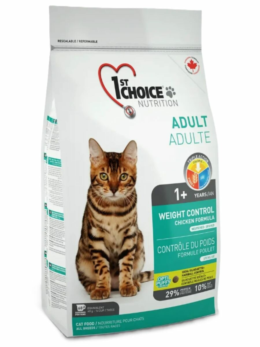 1st Choice Weight Control – формула специально разработана для стерилизованных и кастрированных, а также склонных к полноте животных. Низкокалорийный корм поддерживает идеальную форму, ведь он содержит L-карнитин, который помогает сжигать жир, уменьшать жировые отложения и увеличивать мышечную массу.