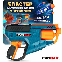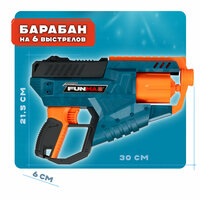 Купить 1toy Funmax «M21» бластер механический, барабан на 6 выстрелов, в комплекте 12 EVA снарядов с доставкой по всей России.