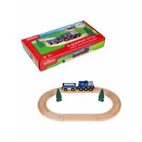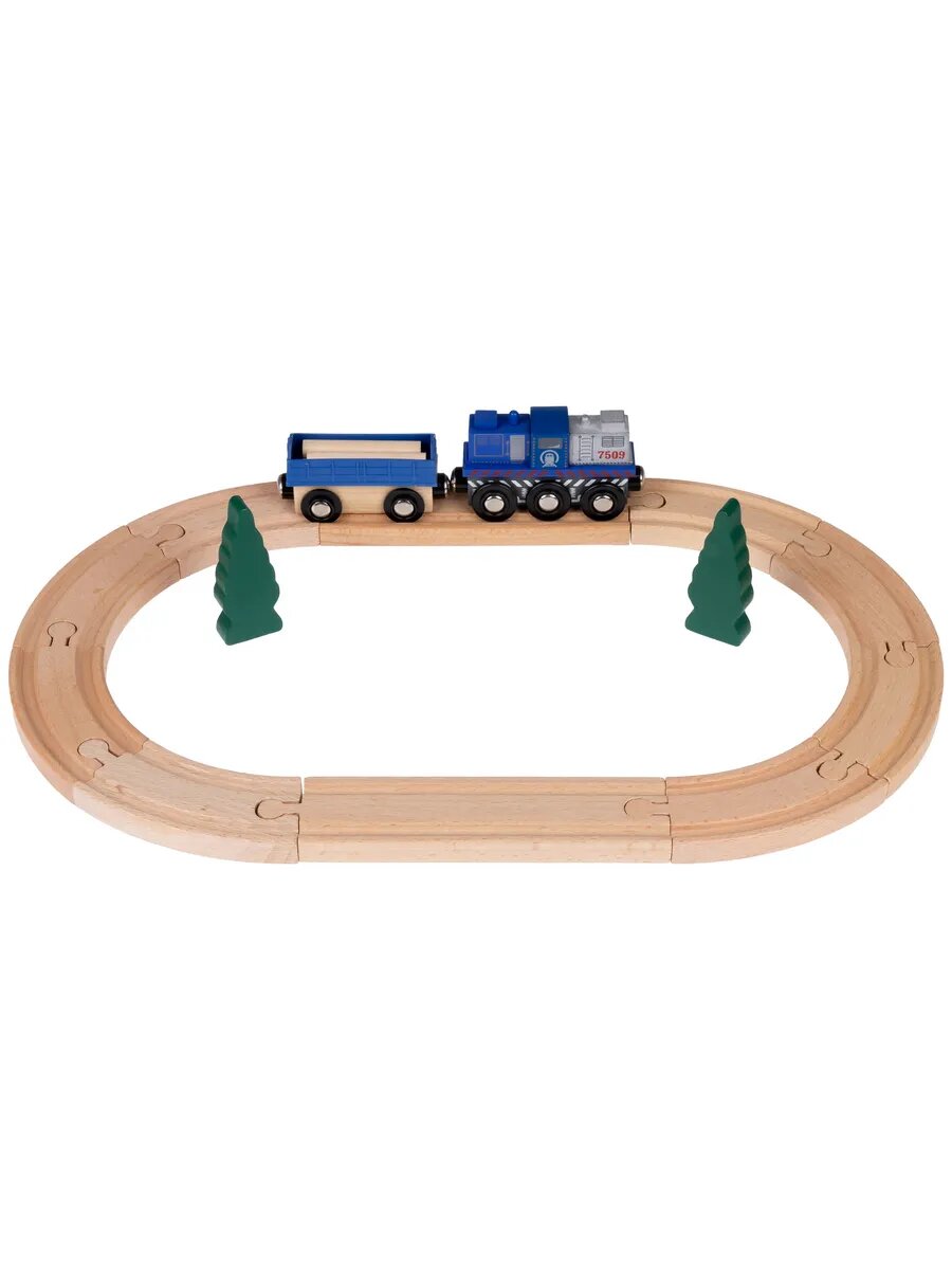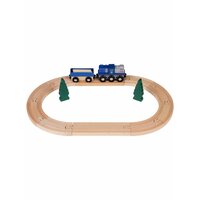 Игровой набор ж/д 1TOY Goodok "В добрый путь!" с синим дерев. грузовым локомотивом с вагоном с 3 бревнами,16 дет