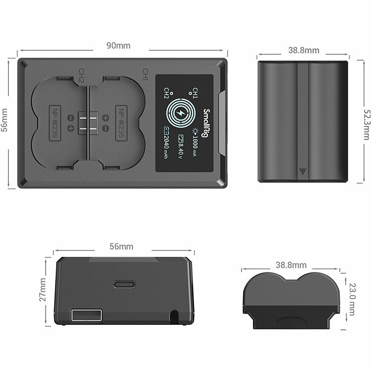 Комплект для автономного питания камеры Fujifilm из двух аккумуляторов стандарта NP-W235 высокой ёмкости и зарядного устройства с быстрой зарядкой
