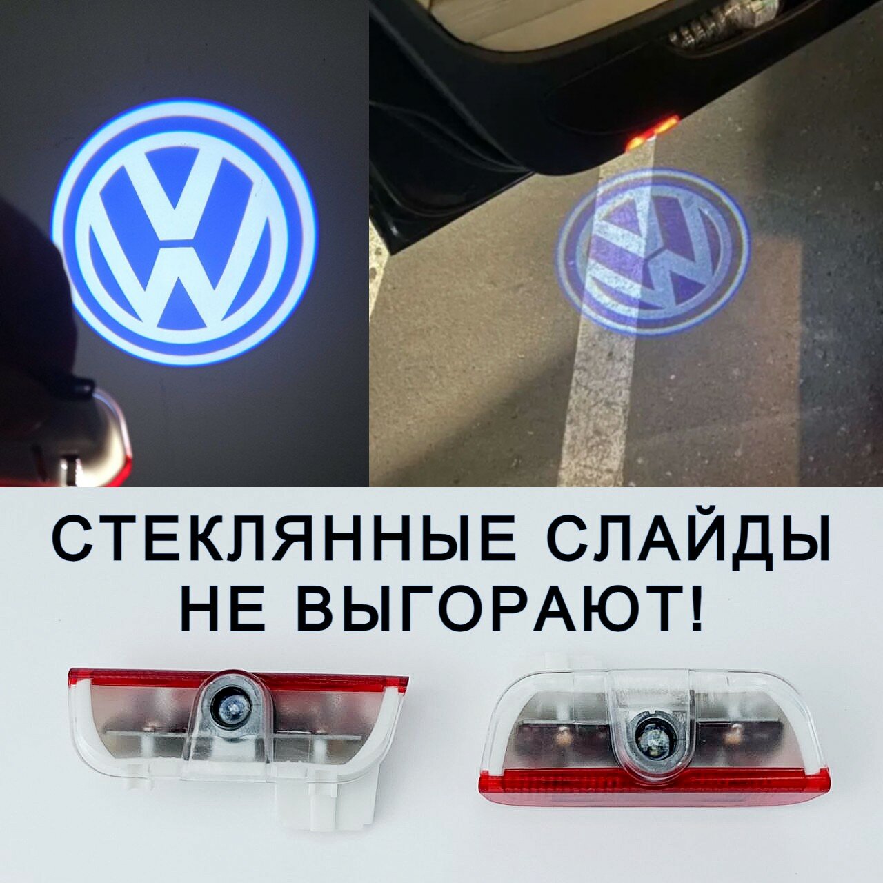 В лоте 2 (ДВА) плафона премиум с проекцией логотипа Volkswagen. Слайды с логотипом выполнены из стекла и служат на порядок дольше дешевых аналогов со слайдами из плёнки. Кроме того, стеклянный слайд даёт более яркое и чёткое изображение проекции! Встают в штатные места без переделок. Подходят на Фольксваген -