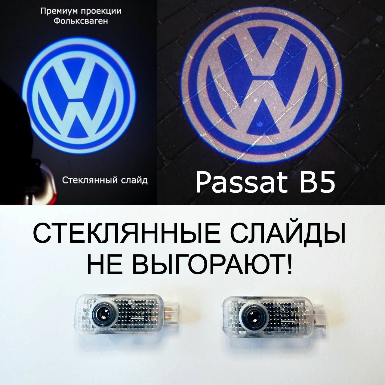 | Дополнительная информация | В комплекте 4 плафона премиум с проекцией Volkswagen (стеклянные слайды) |