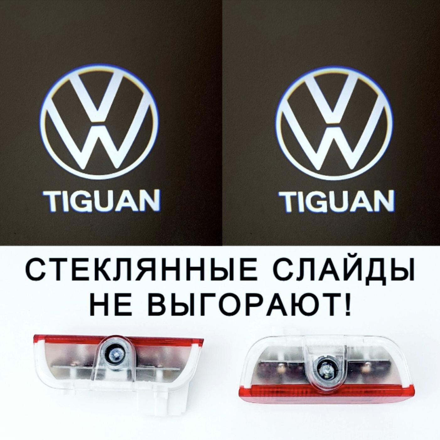 Купить 2 (ДВА) плафона в двери премиум на Фольксваген Тигуан с проекцией логотипа. Стеклянные слайды. с доставкой по всей России.