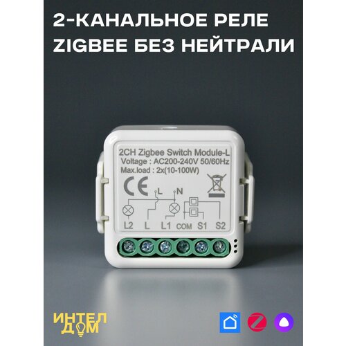 Двухканальное реле Zigbee 3.0 для управления освещением. Установка в подрозетник за стандартным выключателем. Макс. мощность нагрузки 2х100Вт, не требует подключения нейтрали (N). Реле симисторного типа: переключения каналов абсолютно бесшумные! Для исключения мерцания светодиодных ламп - используйте компенсационный конденсатор (идет в комплекте). При необходимости установите его между L и N, непосредственно у группы светильников. Работает с приложениями Tuya Smart Life, Google Assistant и Умный дом (Яндекс). Интегрируется в Яндекс. Станции с Zigbee напрямую, либо через облако Smart Life. Внимание, для работы устройства необходим шлюз Zigbee (Zigbee-хаб).