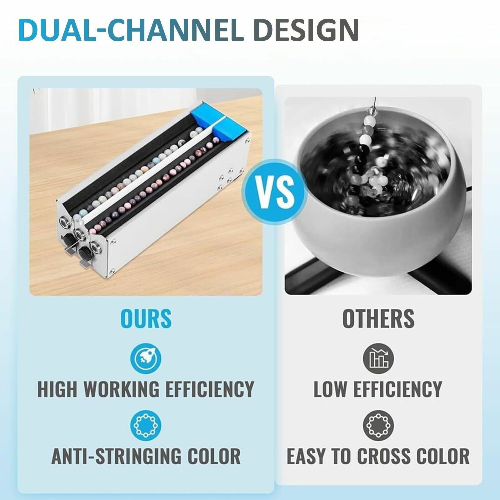 Двухканальный: 2 канала можно использовать для создания ожерелий или браслетов различных стилей, и их можно одновременно использовать для изготовления различных украшений из бисера, повышая эффективность нанизывания бусин