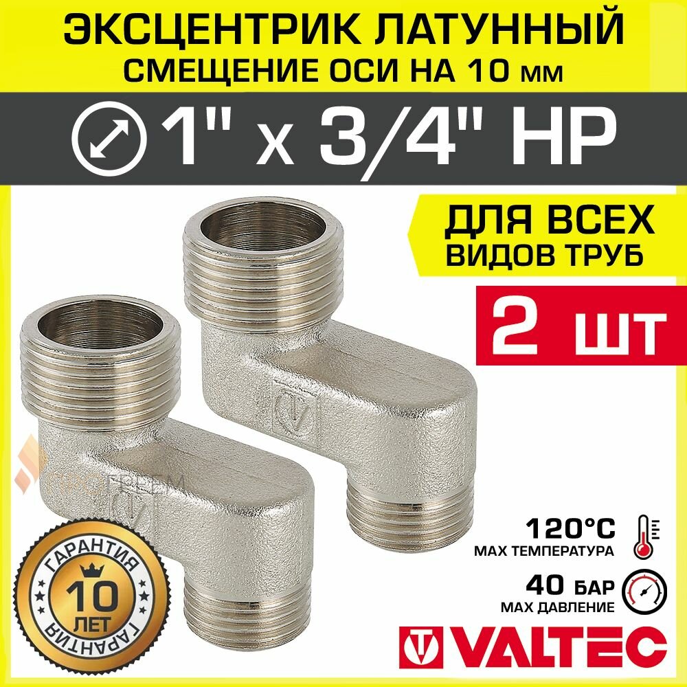 2 шт — Эксцентрик латунный 1″ х 3/4″ НР х 10 мм (смещение оси) VALTEC / Резьбовой телескопический переходник для изменения осевого подключения трубопровода, арматуры, коллекторов, VTr.095. N.0605010: сравнение цен, характеристики, фото, актуальное наличие и цены.