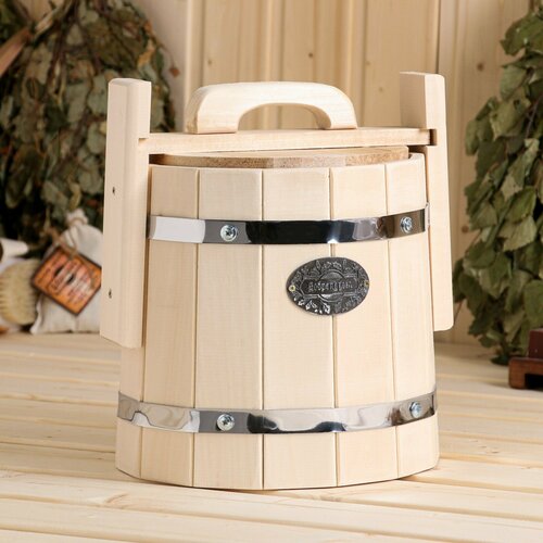 Кадка-бочка для засолки из липы, 5 л, нержавеющий обруч, с крышкой, "Добропаровъ" (комплект из 2 шт)