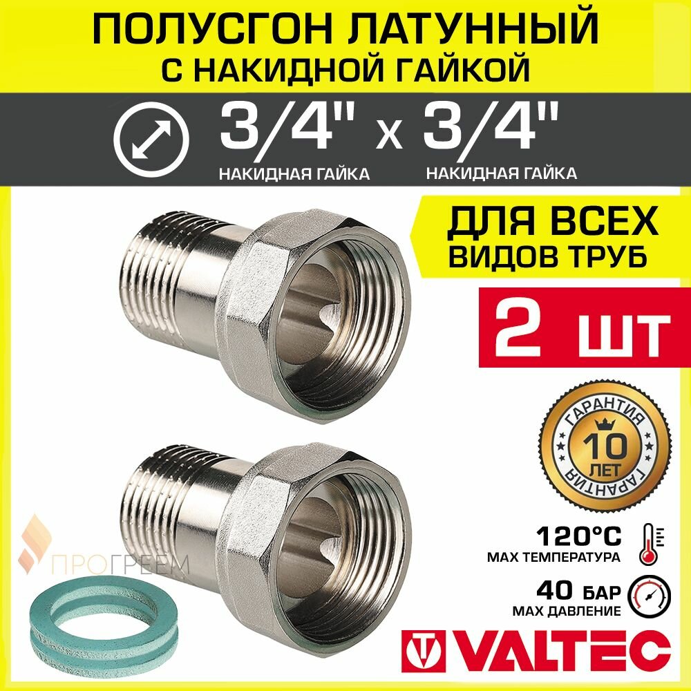 Купить 2 шт — Полусгон 3/4″ Накидная гайка-НР VALTEC, латунный никелиров. / Фитинг резьбовой для монтажа арматуры, расширительного бака, котла к трубе ДУ20 с разъемным соединением, VTr.613. N.0505 с доставкой по всей России.