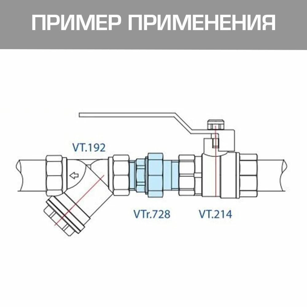2 шт — Сгон прямой 1/2″ НР разъемный с накидной гайкой VALTEC, латунный / Фитинг резьбовой ДУ 15 с американкой для монтажа труб, арматуры в системе отопления и водоснабжения, VTr.728. N.0004