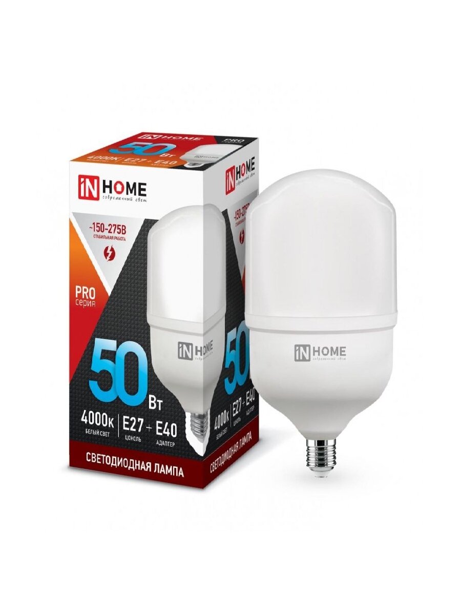 (2 шт.) Светодиодная лампочка ASD/InHome высокомощн. E27 50W (4500lm) 4000К 4K 230V с адаптером E40 200×114 HP-PRO 1118 Нейтральный белый. Цоколь E27: сравнение цен, характеристики, фото, актуальное наличие и цены.