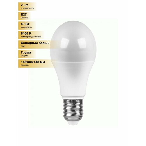 (2 шт.) Светодиодная лампочка Saffit ЛОН А80 E27 40W(3600Lm) 6400K 6K матовая 148×80 SBA8040 55202 Холодный белый. Цоколь E27: сравнение цен, характеристики, фото, актуальное наличие и цены.