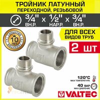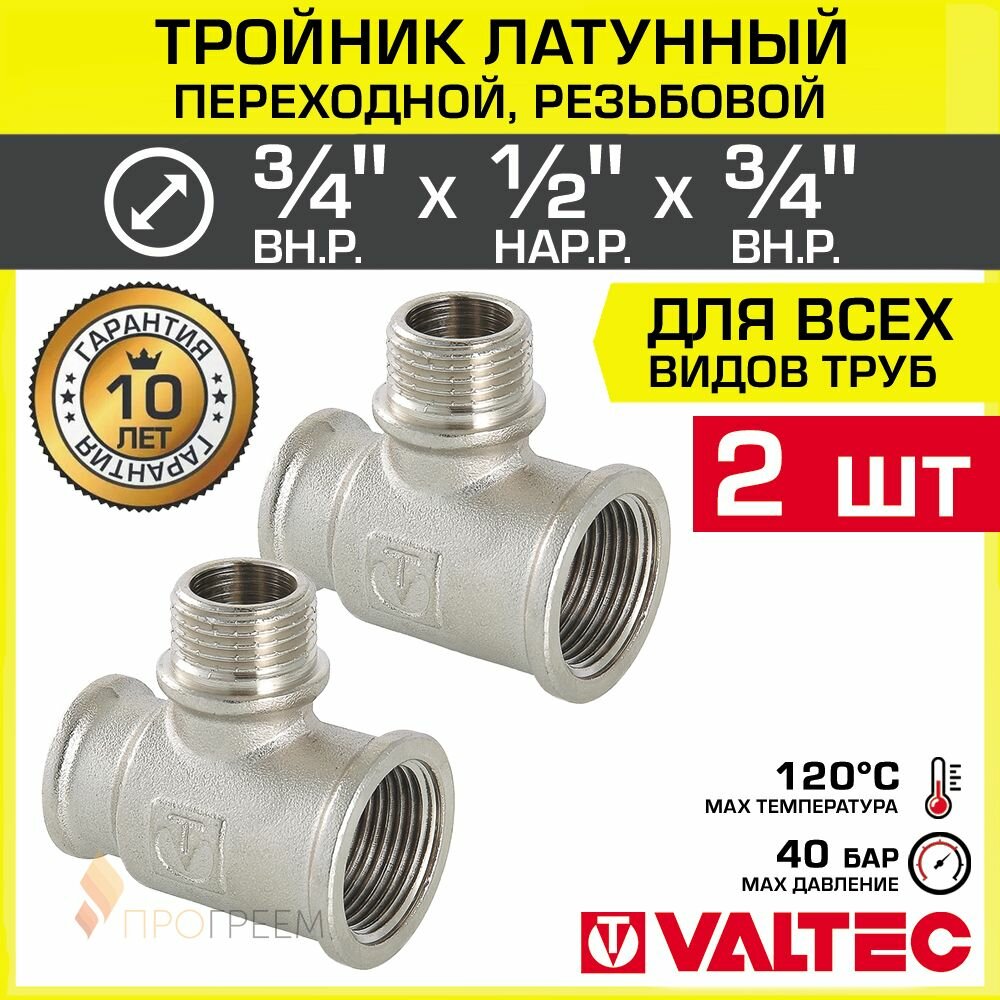 2 шт — Тройник 3/4″ х 1/2″ х 3/4″ ВР-НР переходной VALTEC, латунный никелированный / Трехходовой фитинг резьбовой для монтажа труб системы отопления и водоснабжения, арт. VTr.132. RN.050405: сравнение цен, характеристики, фото, актуальное наличие и цены.